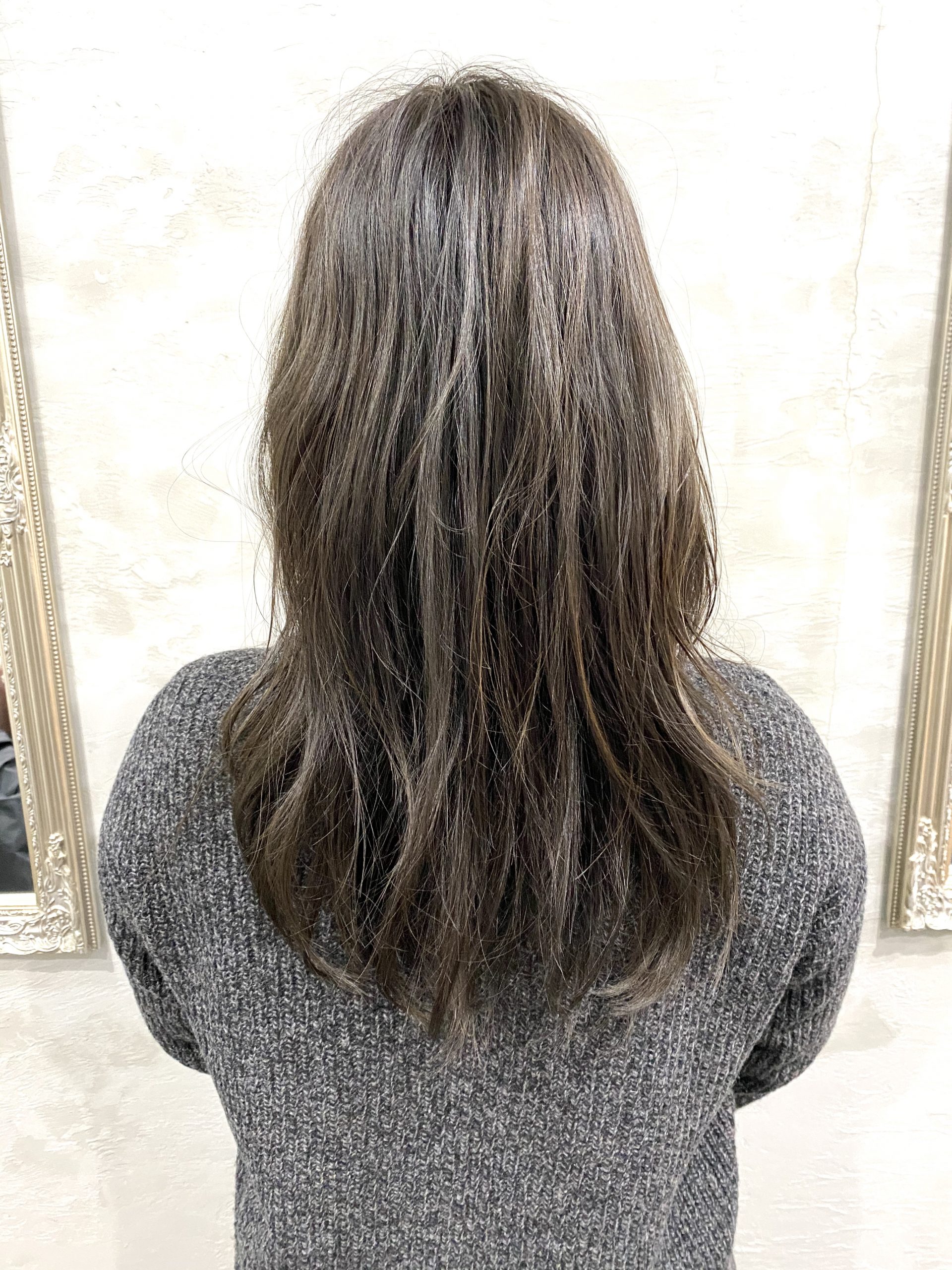 今回はブリーチカラー。表面は細く、毛先は太く。しっかりブリーチして16レベル(黄色くらい)→からのヘアカラーです。
