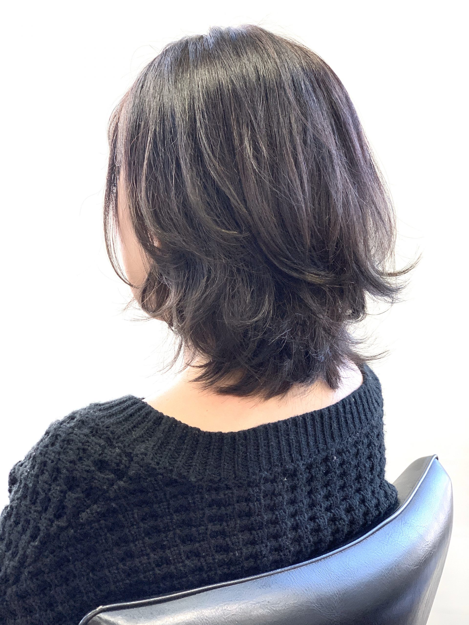 セルフで黒染めをされているのでブリーチしてもオレンジ味が取りきれない為オンカラーでオレンジ味をしっかりと抑え込みます