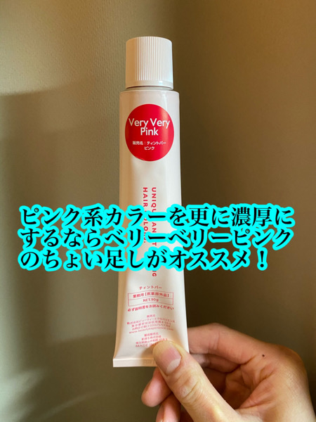 ピンク系は色落ちがどうしてもネックなので、そこをカバーするために少し色味を足してあげるイメージでMIXします。
