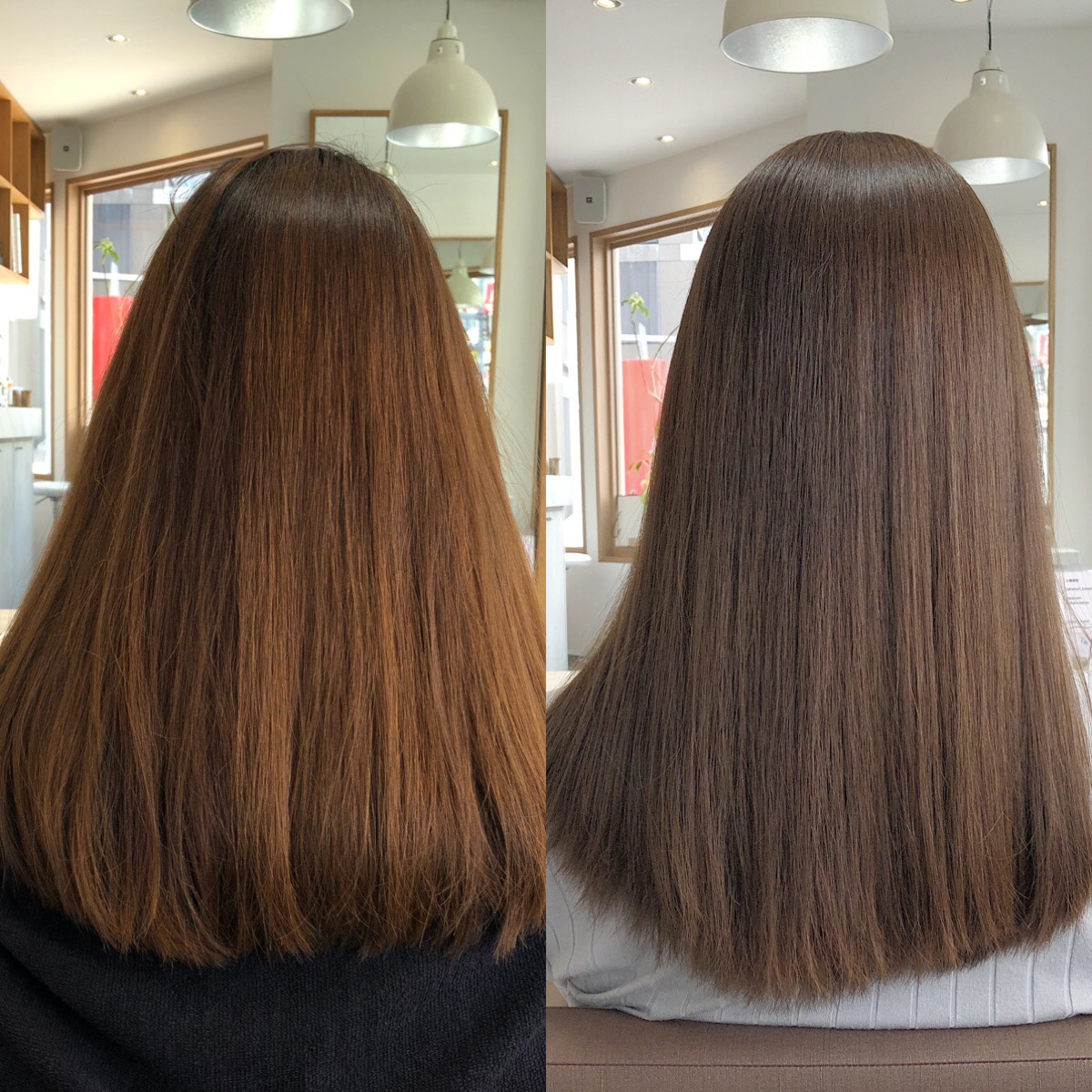 こちらは色落ちしてきた赤みのある髪の毛にグレージュをいれていきました