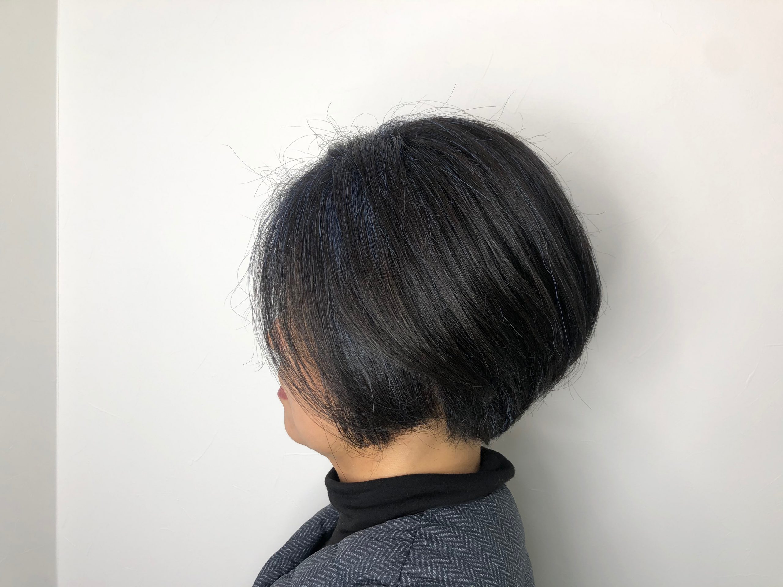 ブルーと黒のコントラストをだすためにオキシは3%で全体を染めています。