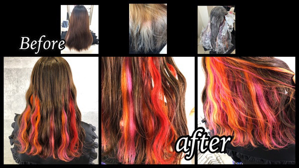 ピンクとオレンジのインナーカラーでお洒落なデザインカラー | bex journal