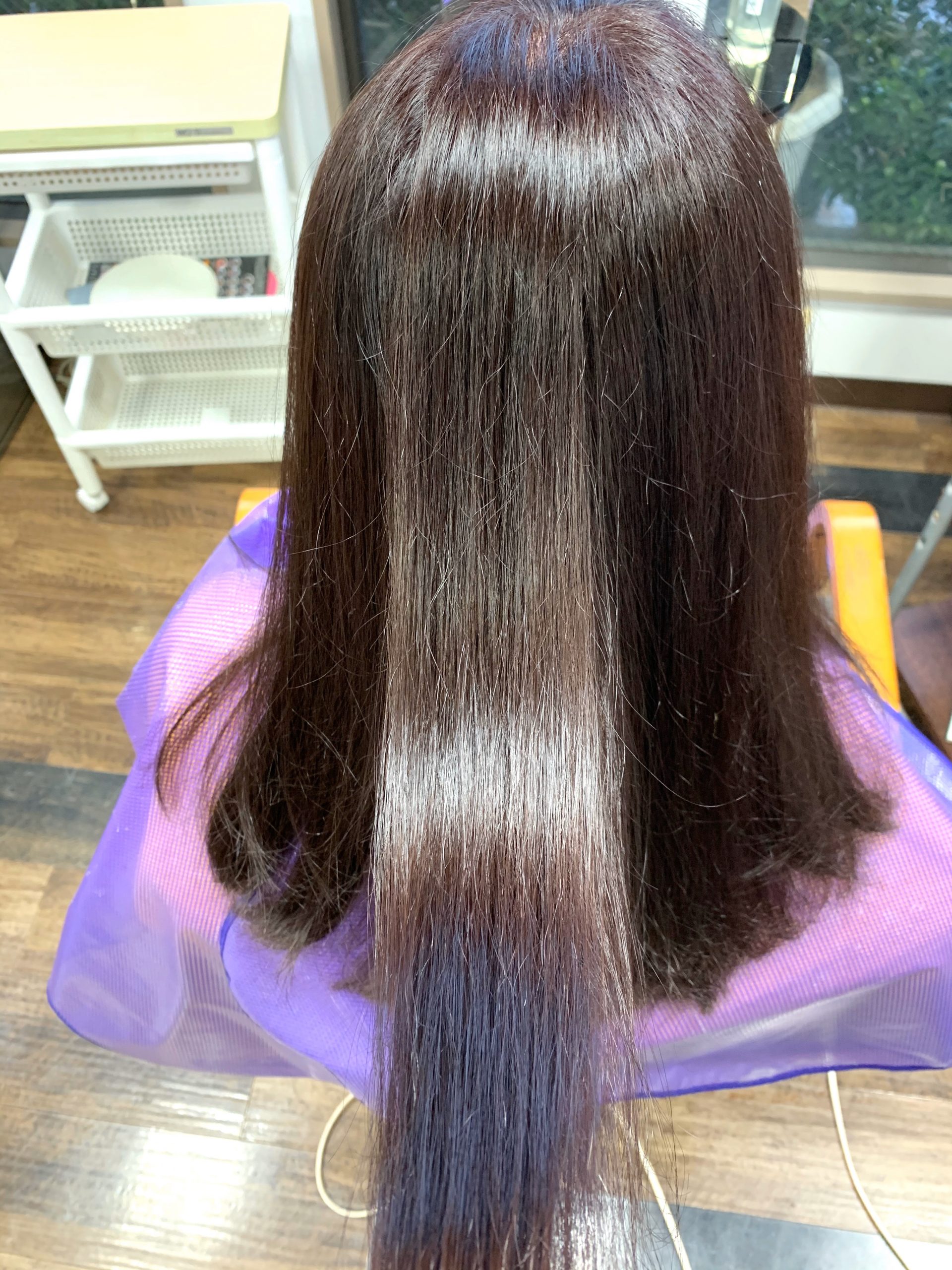 ポイントは黒髪からのヘアカラーなので毛先から塗布して発色させることで綺麗なグラデーションカラーになってくれます♪