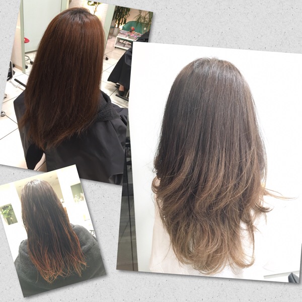 根元に暗めのカラーを毛先はブリーチを施して一度流しました。