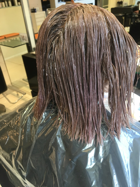 こちらもまだ不安定な髪の毛から染料が出た状態。