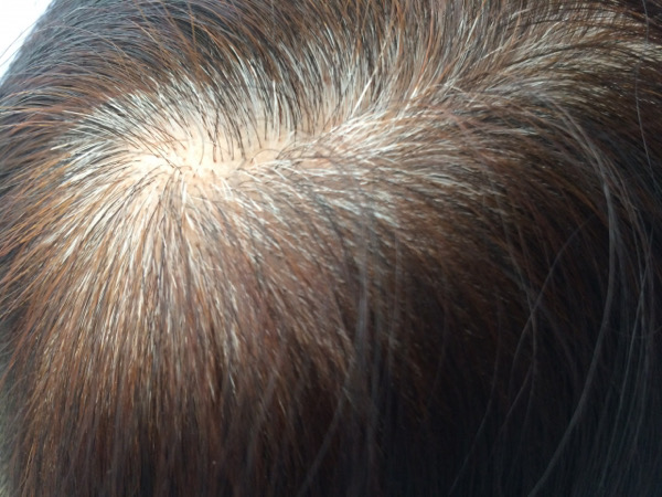 しかし、実際、色落ちした髪の毛は、白髪が浮いてきていて、白髪がわかる状態。
