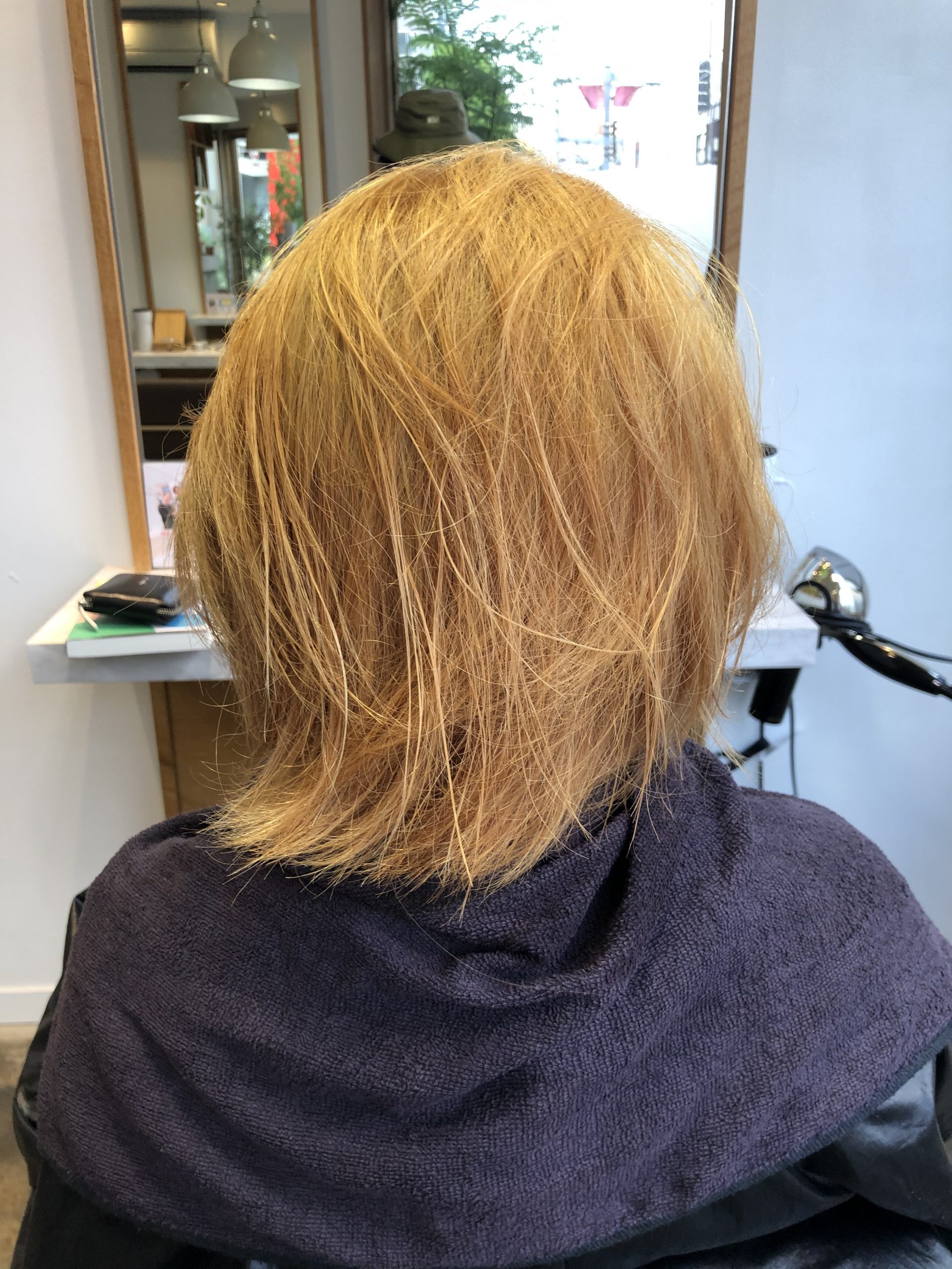 またケアブリーチなどでダメージに配慮していったブリーチ毛と、コテやアイロンで傷んで明るくなった髪質とではダメージ量が違う為、中に入ってくれる染料の量も異なります。
