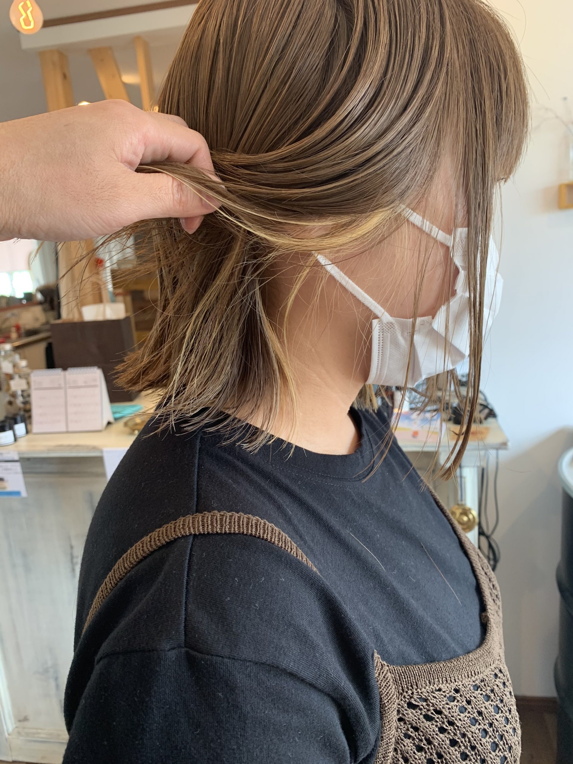 もみあげ、耳裏にさらっとハイライトを入れるだけ。