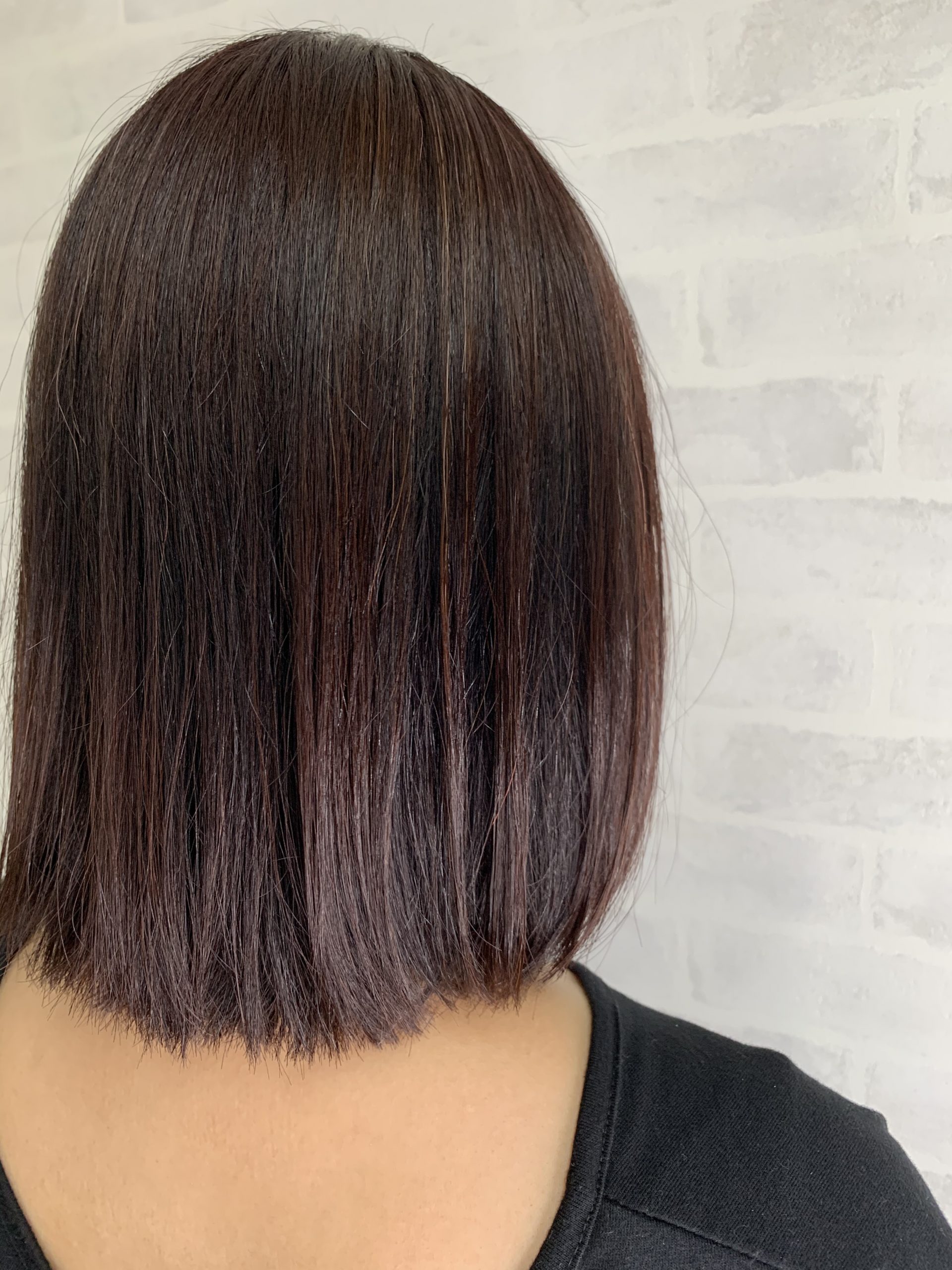 白髪量が15〜20%のお客様で暖色がご希望でしたので、モーブヴァイオレットを選択しました。いつもでしたら他のカラーをミックスしますが今回はマージの実力を知るためにトーン合わせのみにしました。