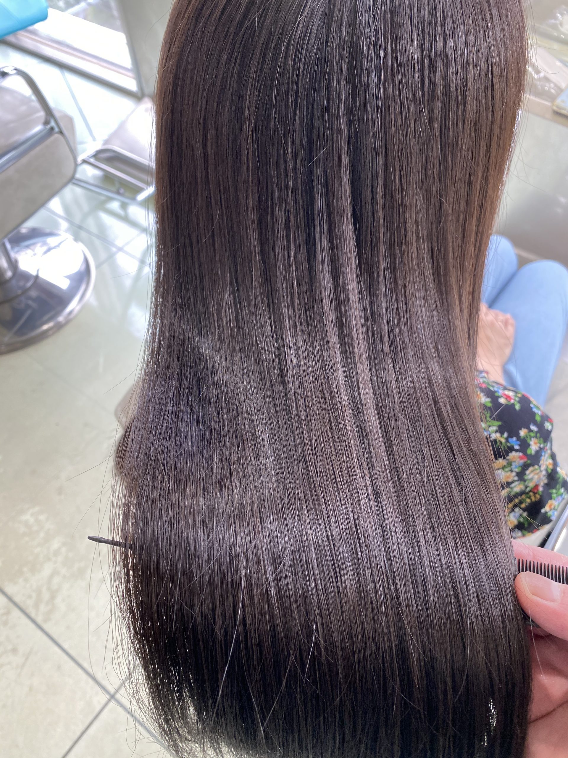 ロングのストレートですのでとにかく『ツヤ』のある質感にする事で、大人の上品な雰囲気づくりを担えるように施術させていただきました。