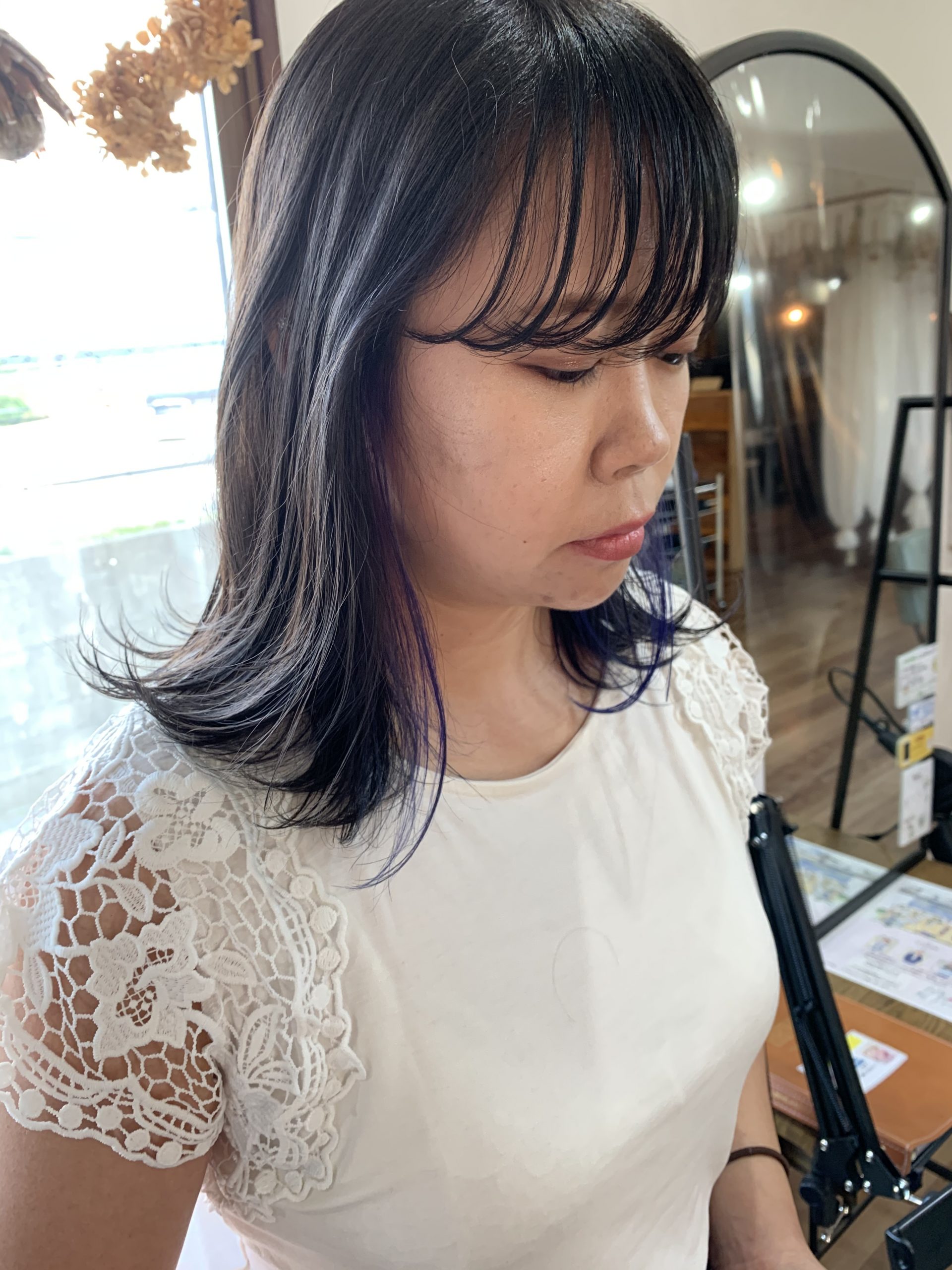 BLUEで赤みを消して、バイオレットで緑にならないように。