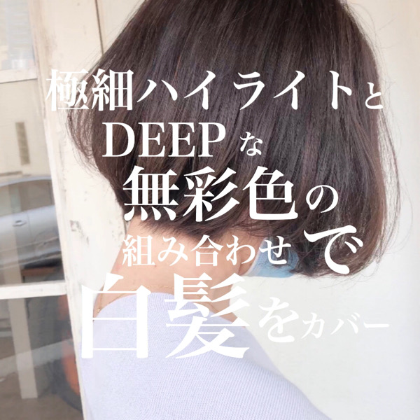 極細ハイライトにスロウマージの無彩色カラーをミックスして白髪をぼかしていくスタイルを紹介します