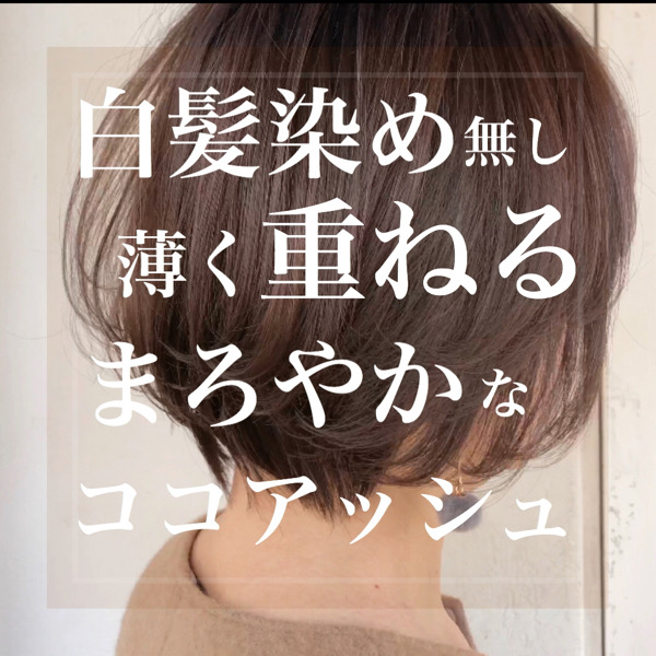 脱白髪染め/白髪染めを使わず薄めのブラウンとベージュを重ねて作るココアアッシュカラー