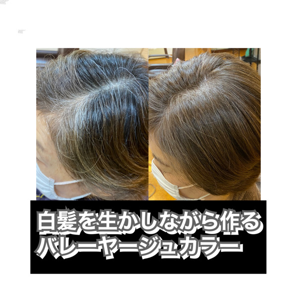 白髪を生かしながら動きのあるカラーに仕上がりますので白髪をしっかり染める場合はあまりむかないですが