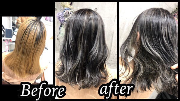 まずはハイライトを取りながらベースは濃厚なグレーにしました。