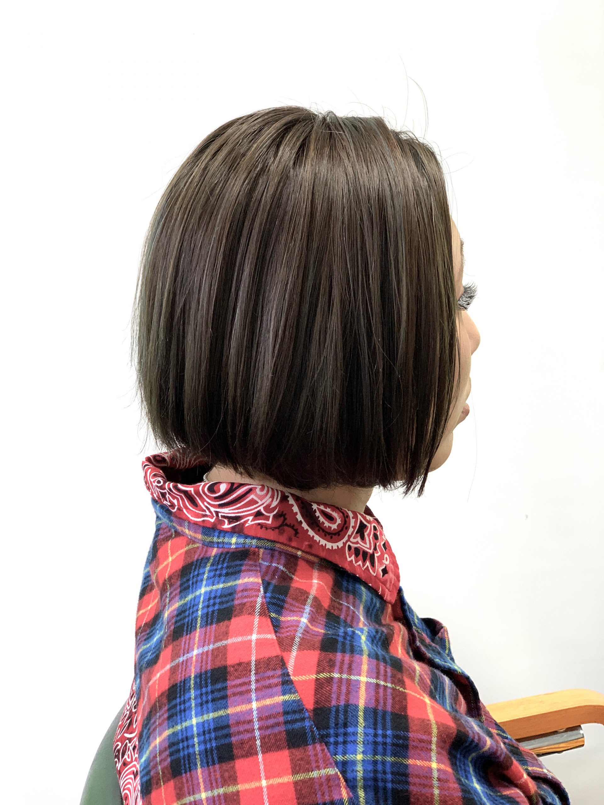 ハイライトをグレージュにしてベースのカラーは赤味を抑えたヘアカラーに