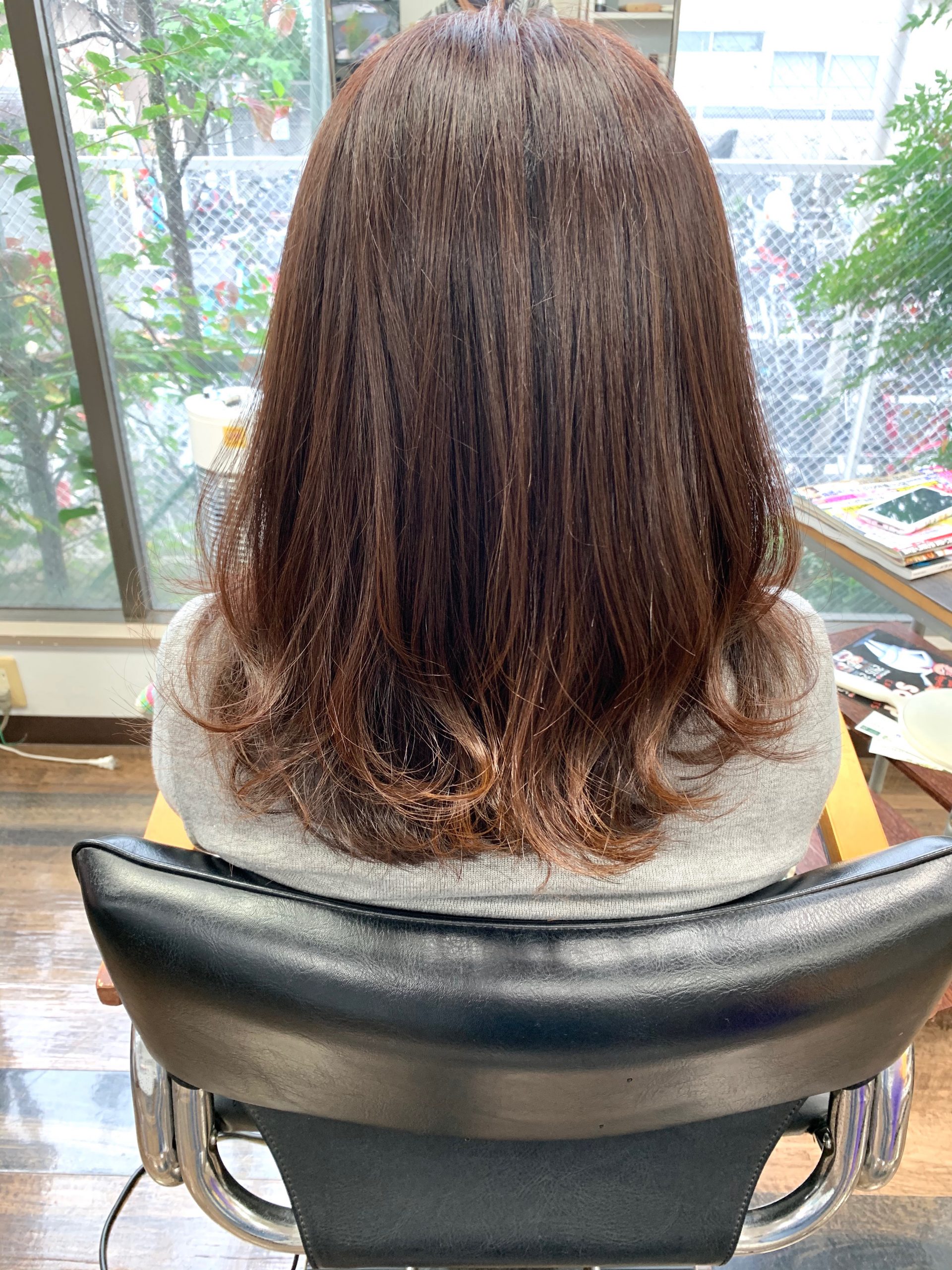 根元は白髪染め、毛先はファッションカラーで攻めていきました。