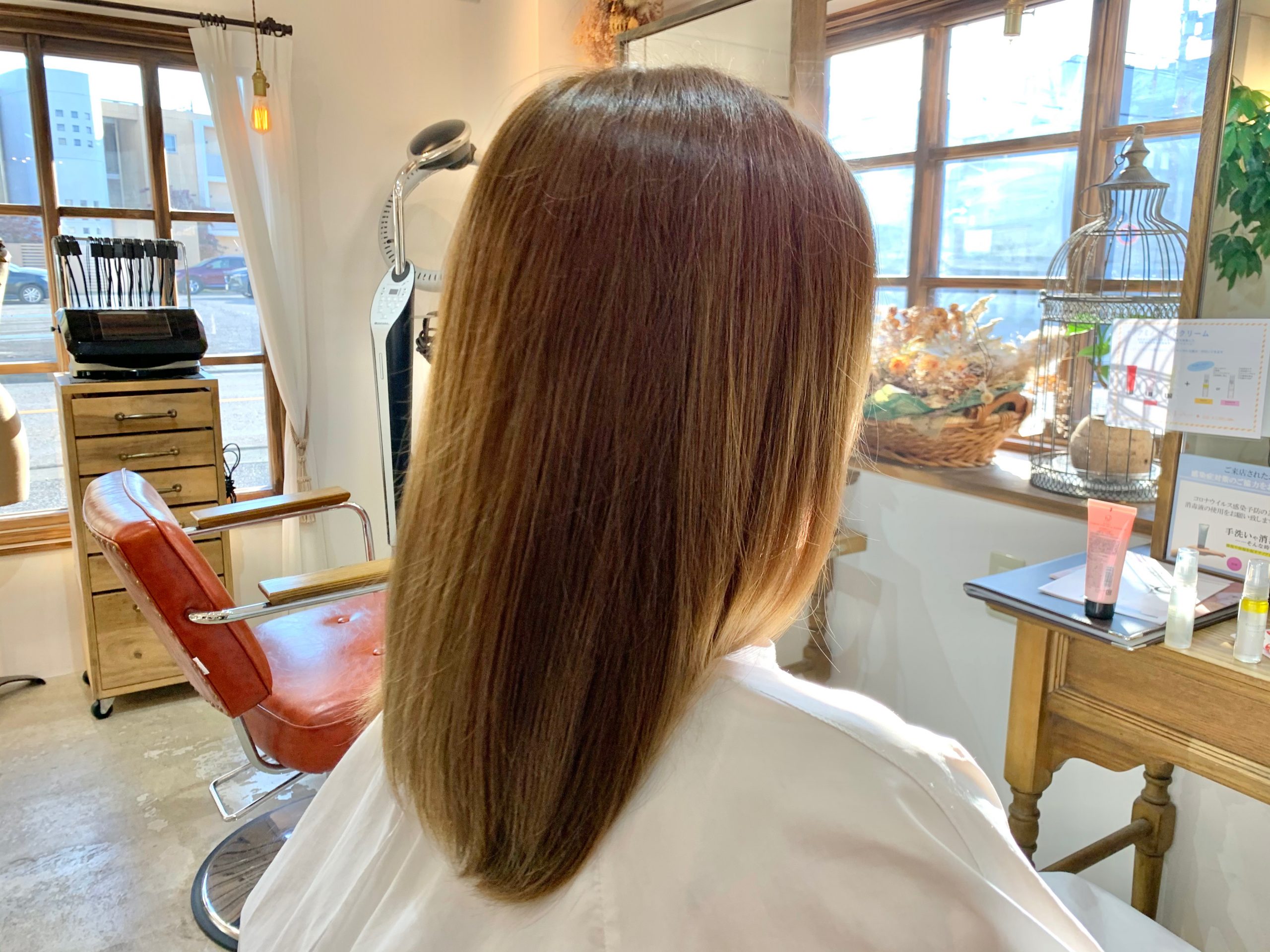 黄色みが消えて柔らかなグレージュになりました。