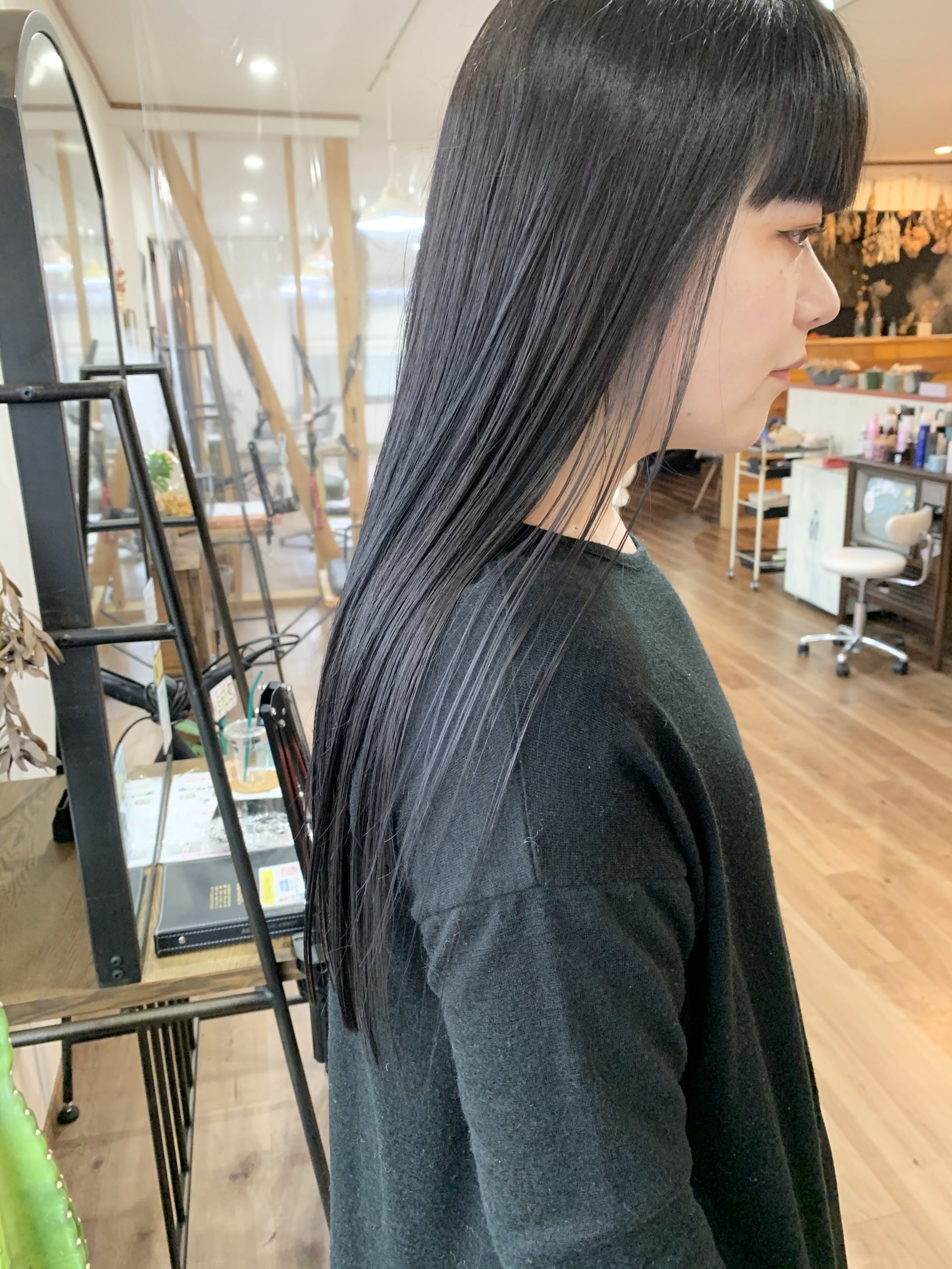 ・暗く ・透明感 ・以前インナーブリーチ履歴の所も同じ色で染める