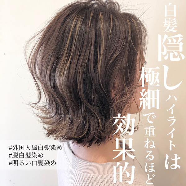 白髪隠しハイライトは極細で重ねるほど効果的に『浮き出る』