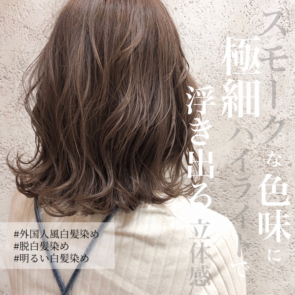 今日はスモークなベースに極細ハイライトを合わせて『浮き出る』白髪隠しハイライトカラーを紹介いたします