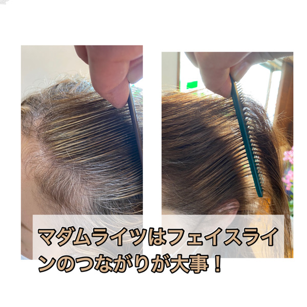 マダムライツは白髪が生えている部分に細かいハイライトを重ねて白髪と染めた部分につなぎ目をつけます