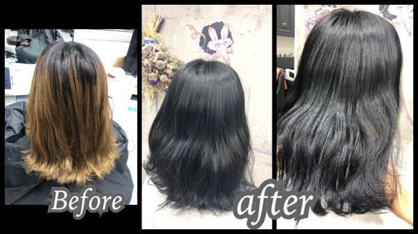 毛先にはブリーチの履歴があります。 ここにブルーグレーをのせました。