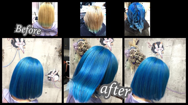 ブリーチを積み重ねることで赤みを完全になくします! ここに