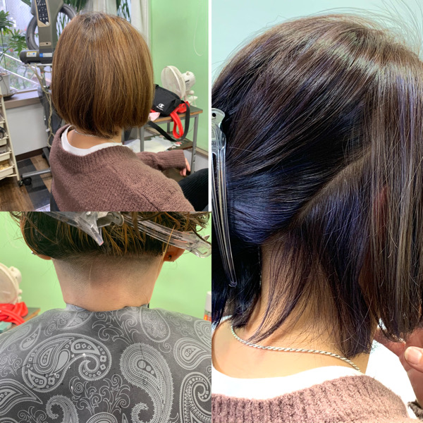 襟足付近を刈り上げることで首が長く見える効果が有ります。