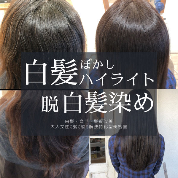 今日は『長い髪の毛とひょろっと白髪』を立体的に艶染めする方法を紹介いたします