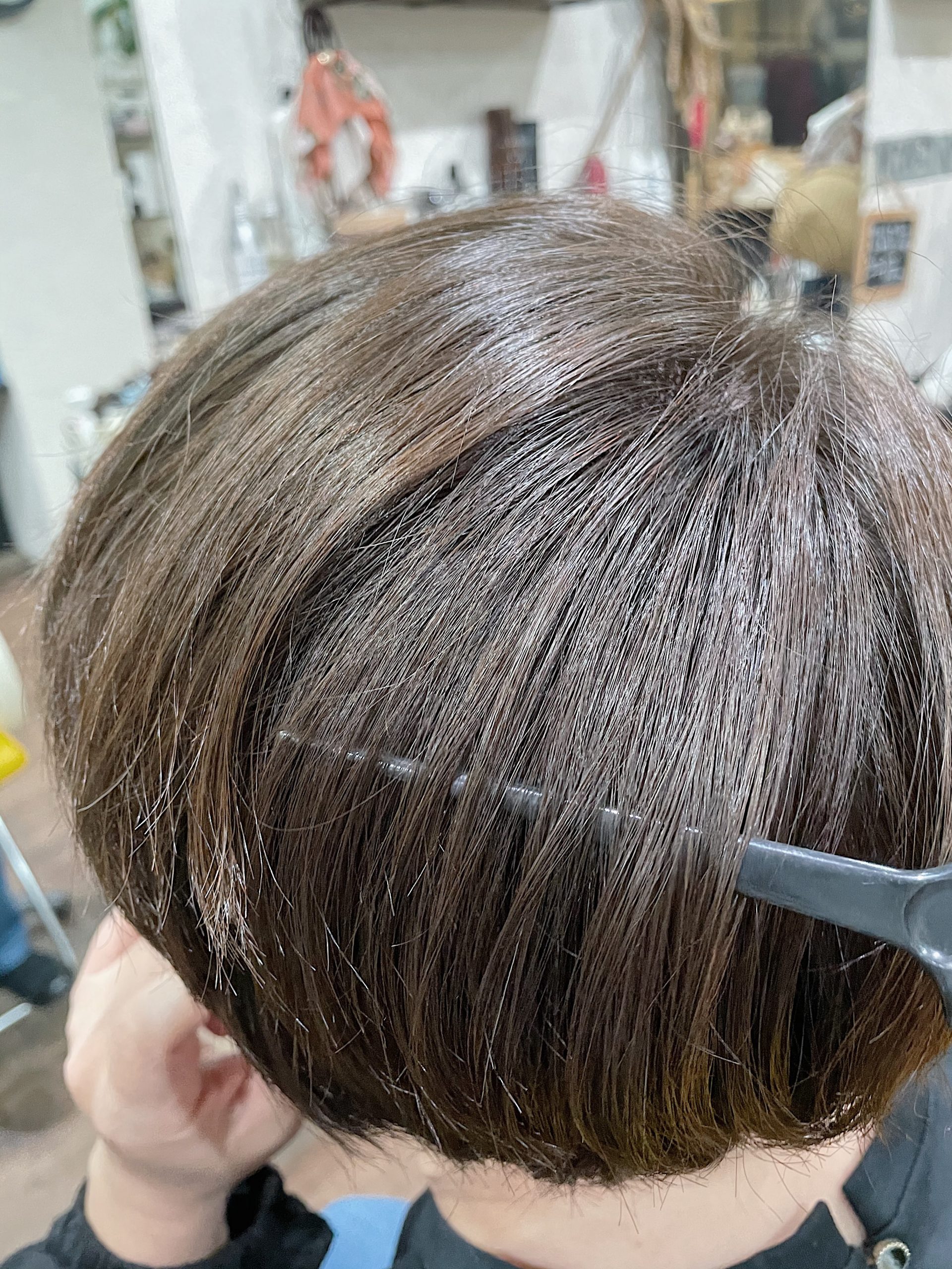 色が褪色して艶がなく見えるのでスロウマージでカラーをします。