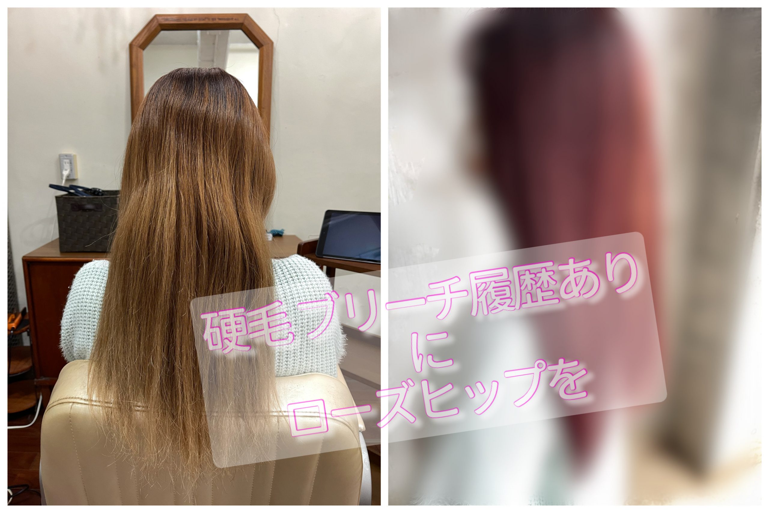 髪質は太く、クセ、赤みがあり、アッシュ系は染まりづらい髪質です。
