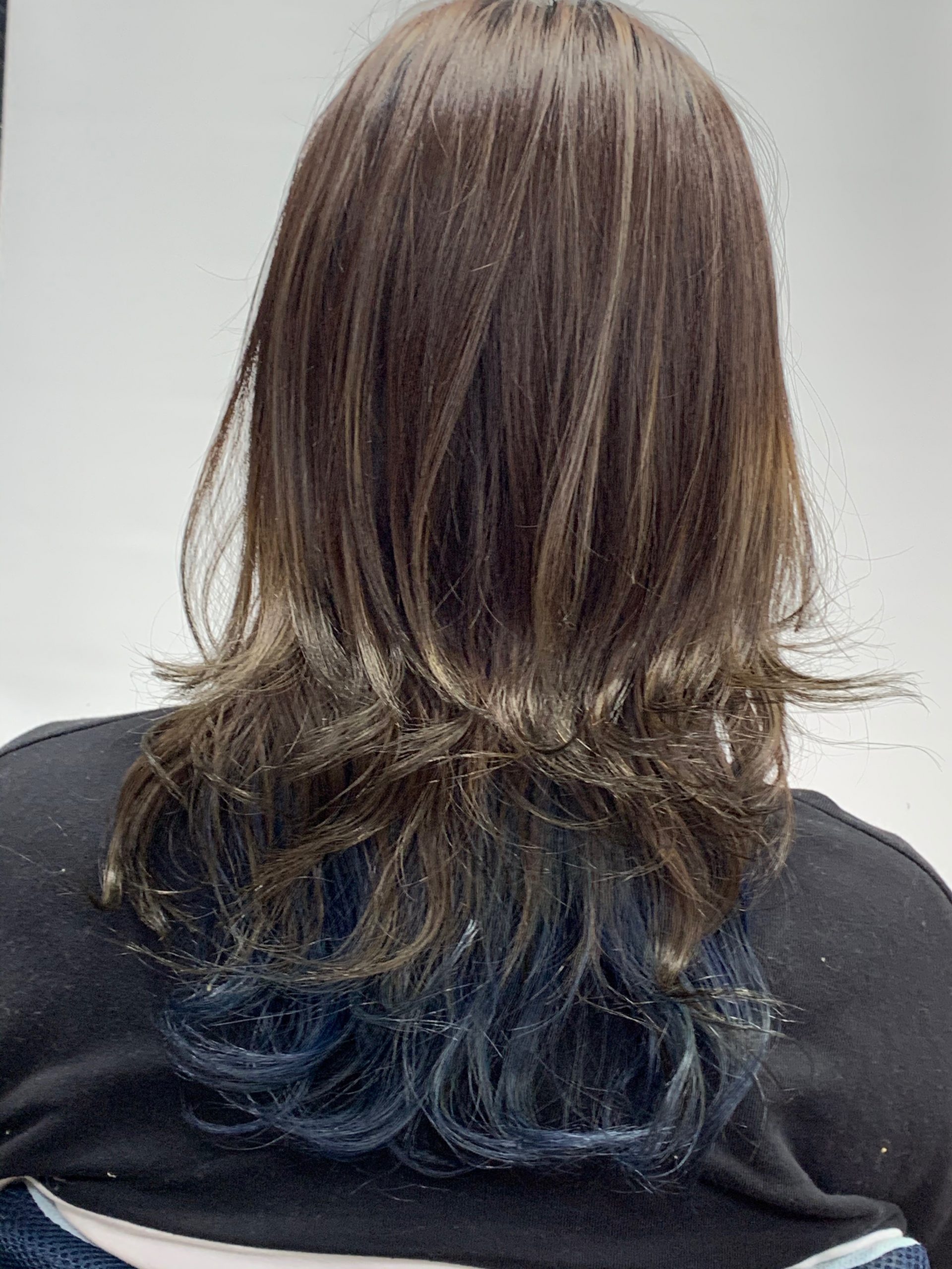 襟足付近の髪の毛をブリーチしてインナーカラーをデニムにします。
