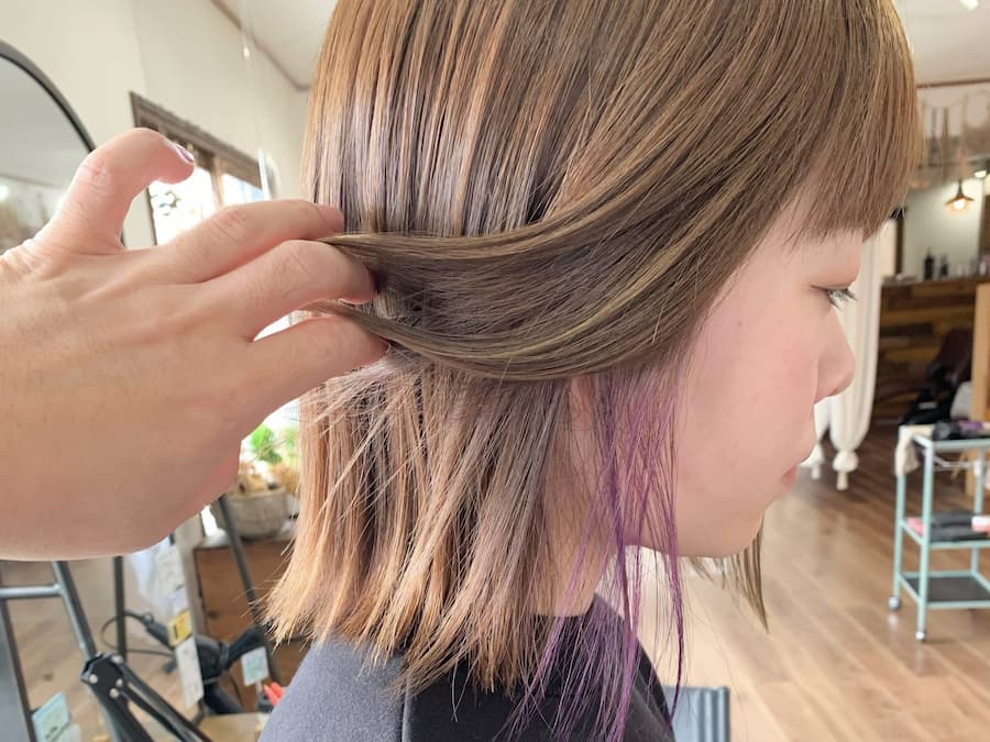 インナーは少量ブリーチで抜いて、 紫をオン。