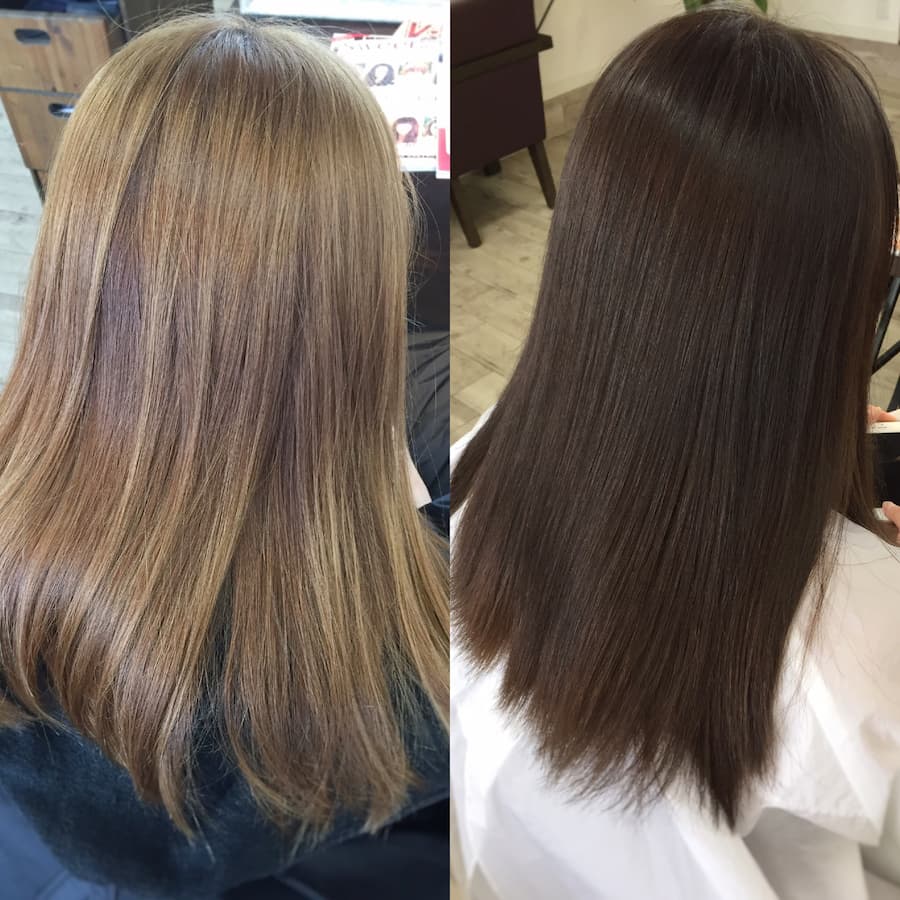 ブリーチ毛なので補色として今回入れましたが、それなりの明るさの場合でアッシュ感を