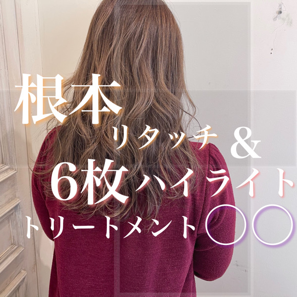 今日は根本リタッチと6枚ハイライトと〇〇を使った優秀時短カラーを紹介いたします。