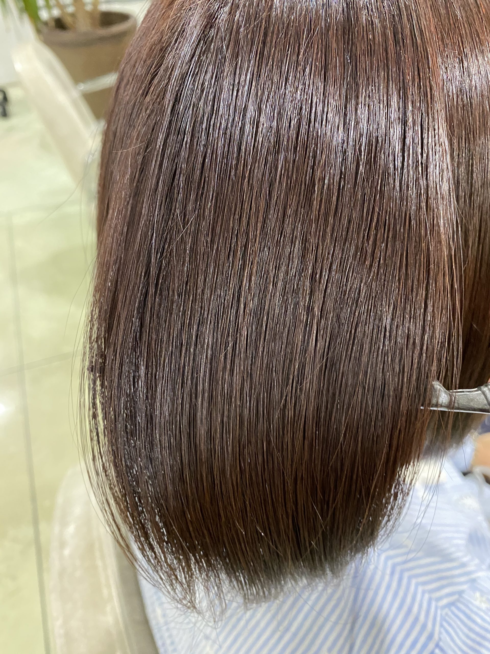 今回はピンクベージュカラーとヘアケアでメンテナンスさせていただいたボブスタイルをご紹介をさせていただきます。