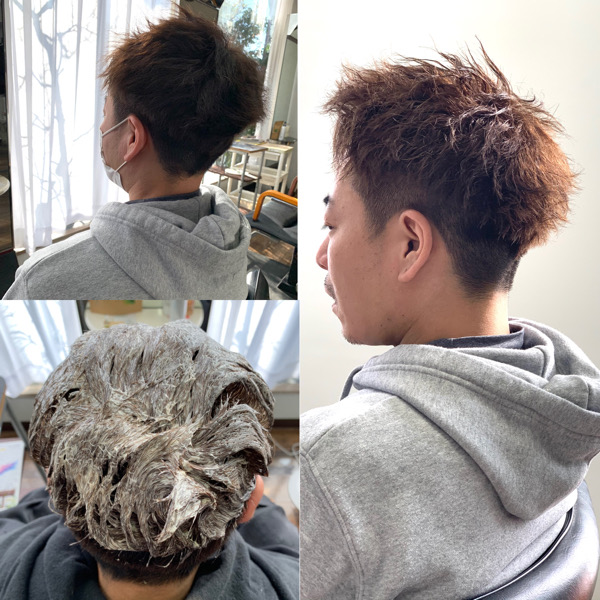 ブリーチを続けてしまうとパーマをかけることが困難になる為ヘアカラーのみで染めていきます。