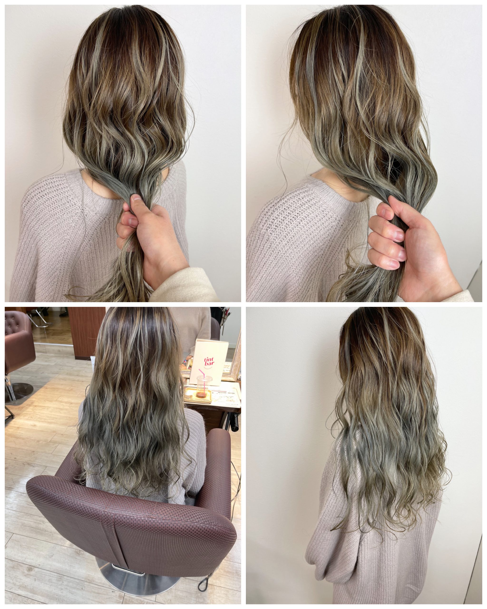 今回はカーキグレーのバレイヤージュカラーをご紹介いたします