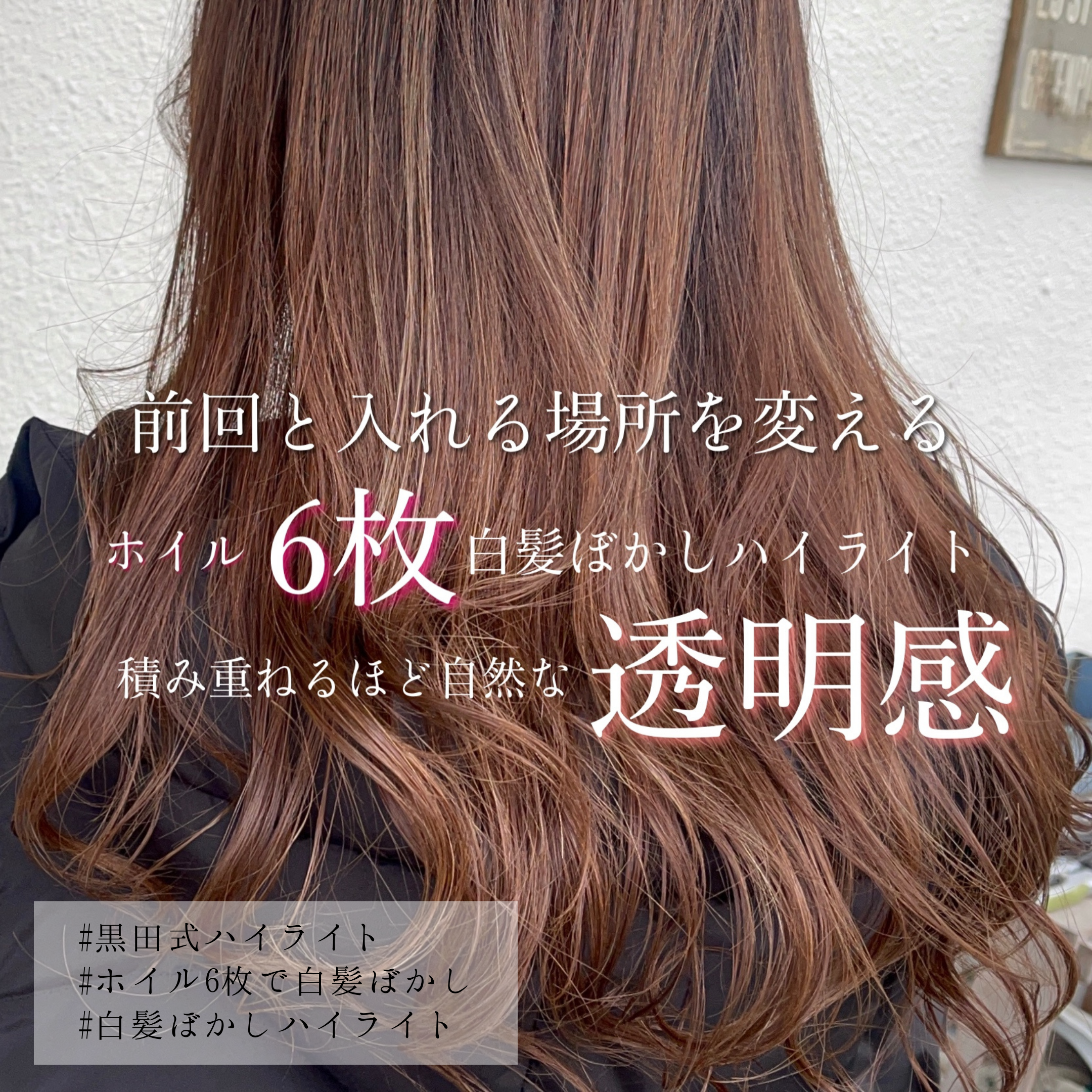 今日は|ハイライトの入れる場所を変える|を写真で解説 6枚白髪ぼかしハイライトを紹介いたします。