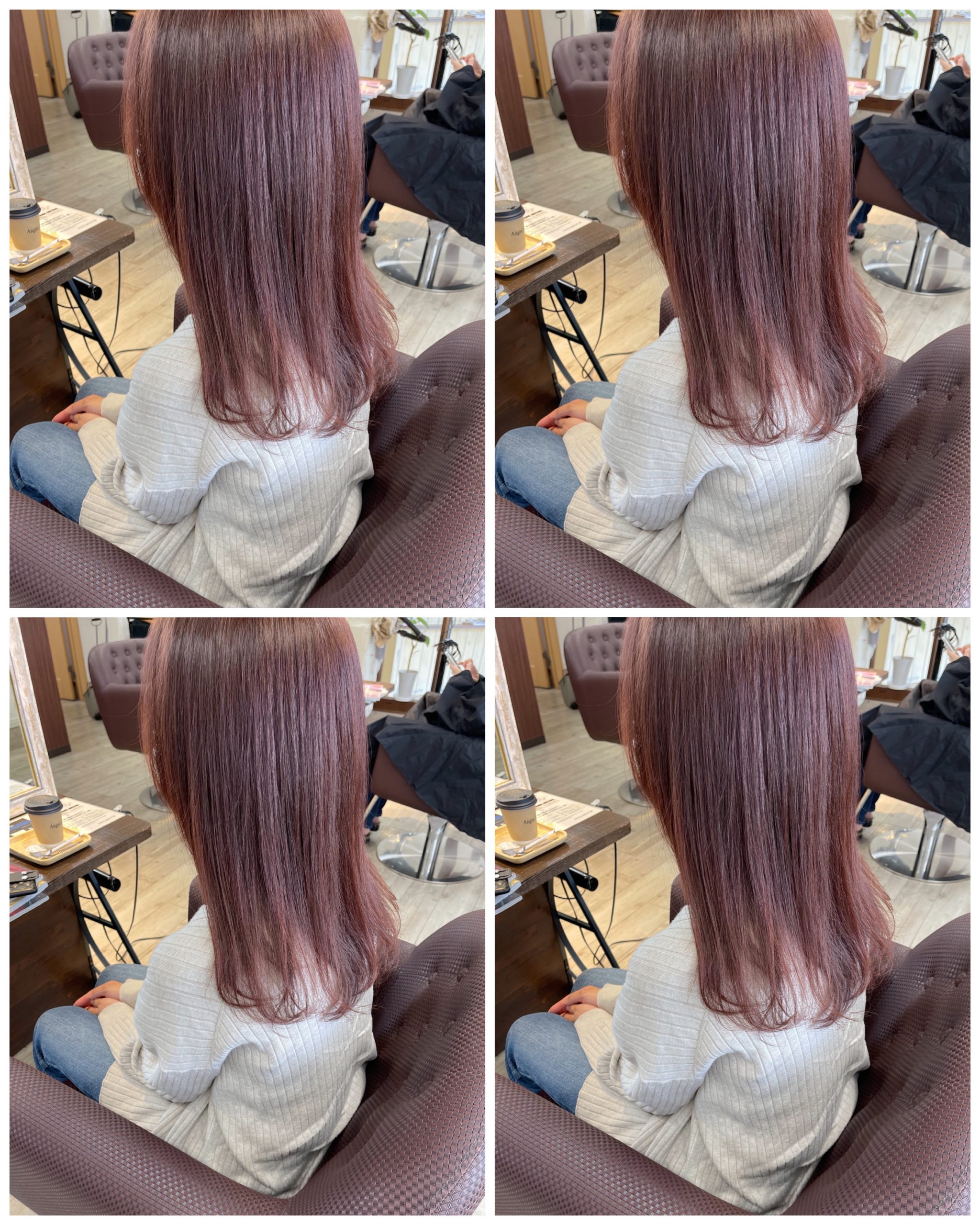 今回は残留色素がある状態からブリーチを使わないで、なるべく明るくしながら色味を入れた