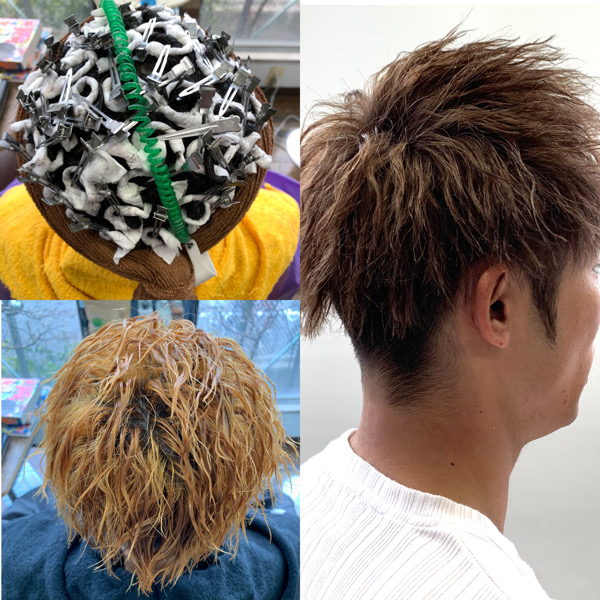 今回黒髪スタートなので問題なくツイストパーマをする事ができますが次回ツイストパーマをする事が出来る様にブリーチの色の抜け具合をコントロール。