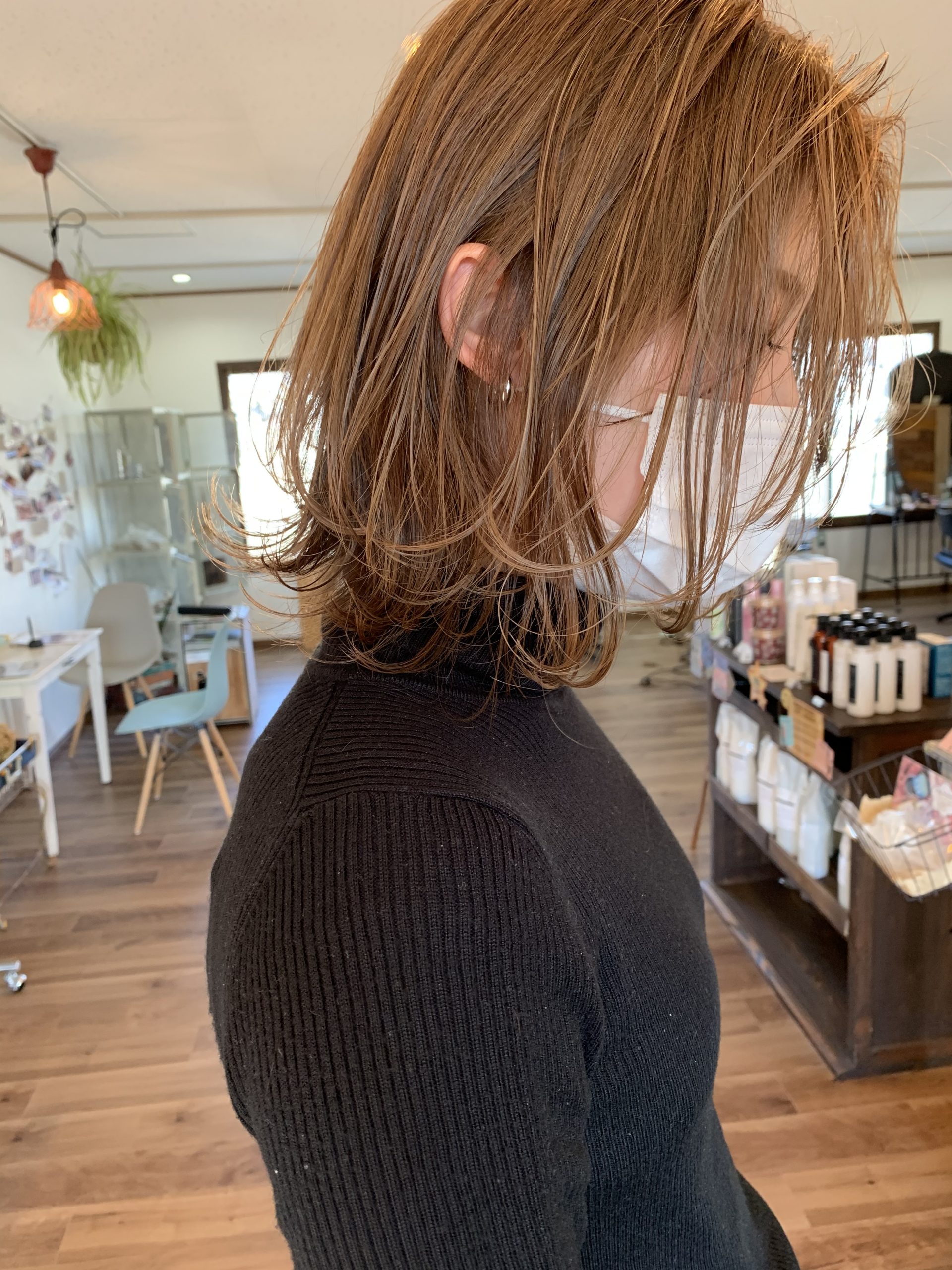 こちらのお客様は毎回明るいカラーをされているのでブリーチ無しでこんな明るさまでいけます!