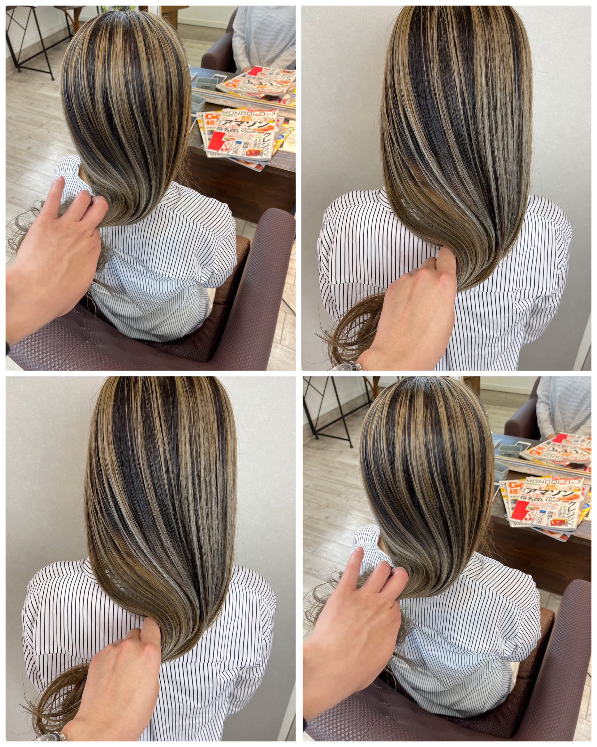 トップからブリーチを今回バレイヤージュで入れていきました