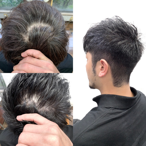 濃いブルーを使う事で重く見えない白髪染めが可能