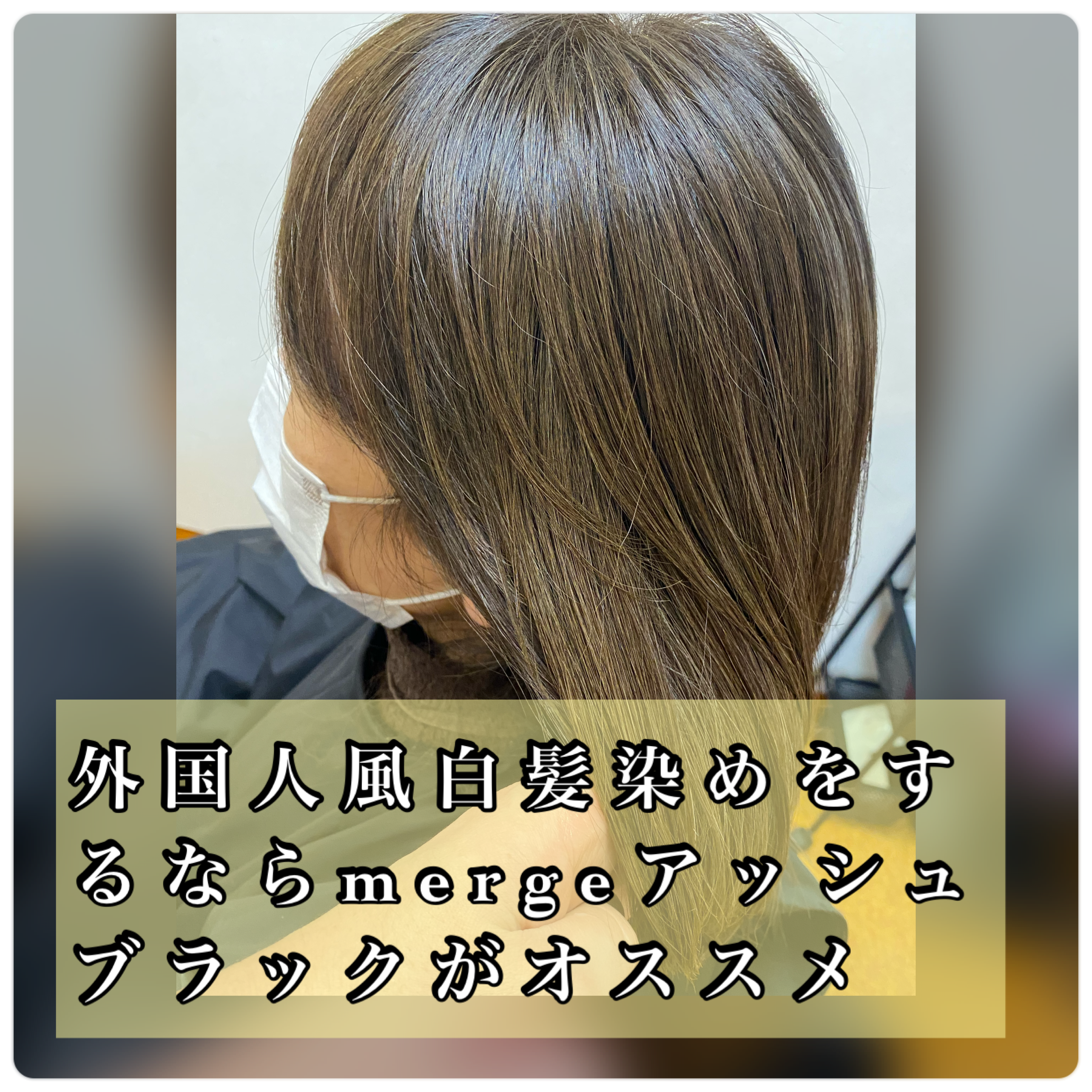 最近お客様にオススメしている外国人風白髪染めが出来るmergeは、褪色後も明るすぎず、程よいナチュラルトーンに仕上がるので気に入って使ってます。