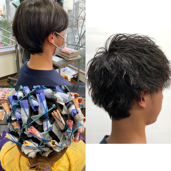 マッシュベースに緩めのツイストスパイラルパーマが加わる事でよりカッコ良くセットが楽なヘアスタイルが完成します