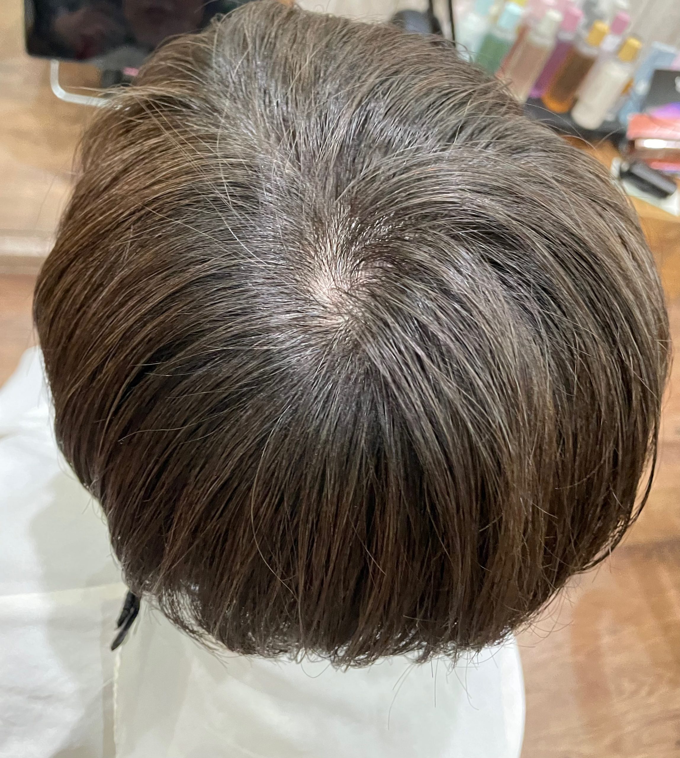 今回は前回入れ終わっているので通常の白髪染めしますが、前回の履歴を活かしてよりハイライトがわかりやすくします。