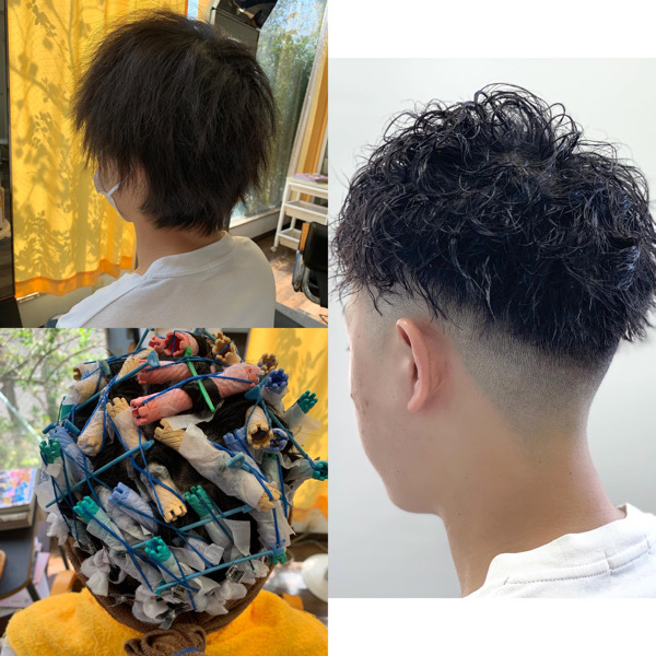 今回は0ミリで刈り上げるスキンフェードとツイストスパイラルパーマのご紹介