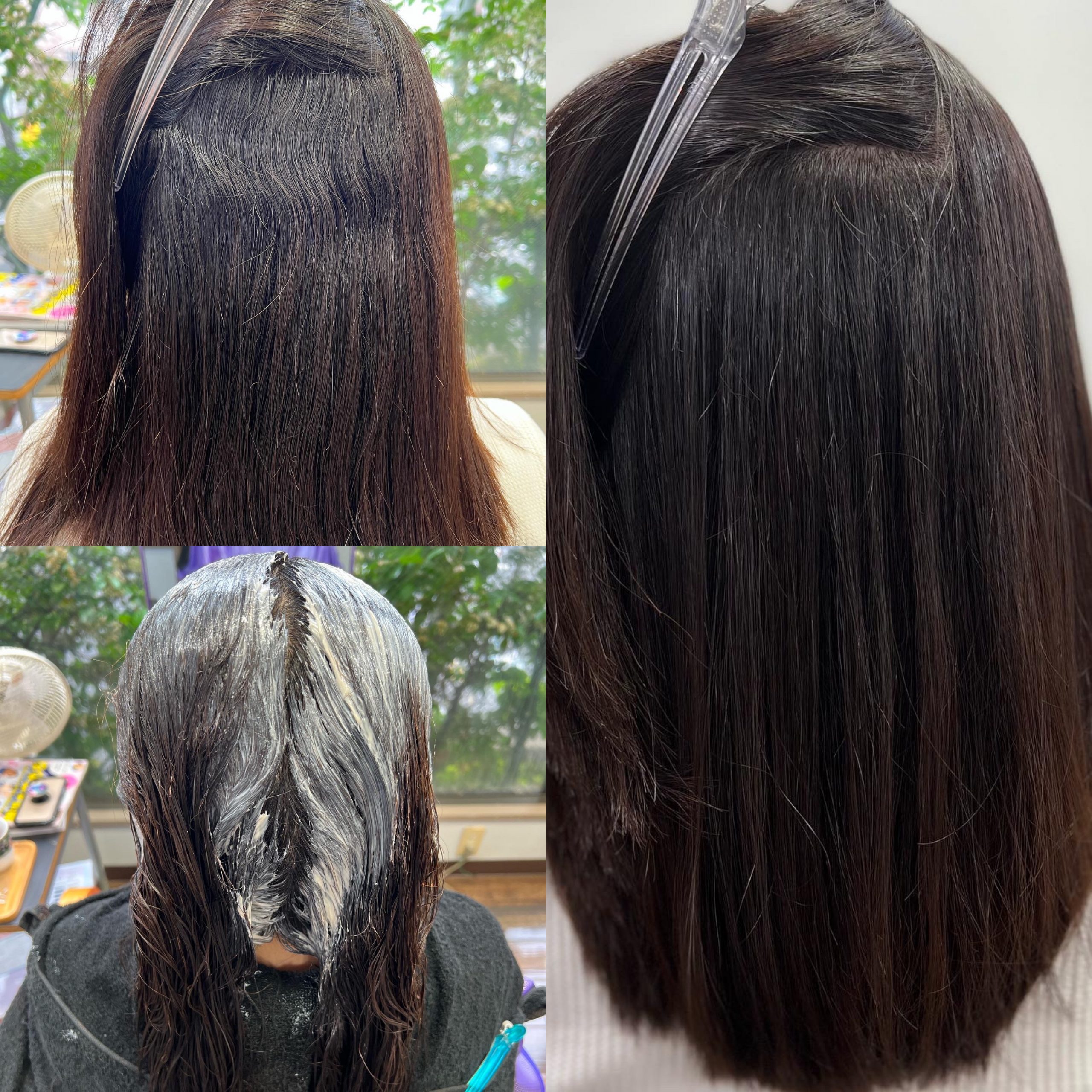 伸びてきた部分をリタッチ矯正してあげる事で1年中まとまりやすい髪の毛になります